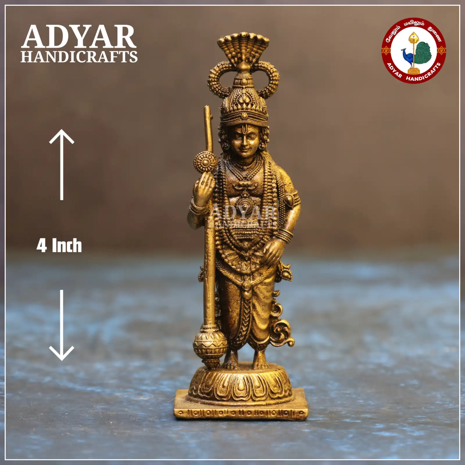 Made from premium quality brass, this compact idol features elegant detailing with a sturdy build, making it ideal for pooja rooms, small spaces, travel use, and gifting.
